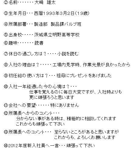 4月から新入社員が入社しました。人数は、15名になります。会う度に、挨拶をしてくれて、気持ちがいいですね。今後、協立製作所で活躍してくれるでしょう。皆さん、温かく見守って下さいね。