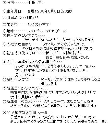 特に、今年は30歳となる節目の歳でもあり、今までの経験を、会社のために実績として残す事を求められる年齢となります。20代の時には、多めに見て頂いた事も、30代では、言い訳もきかず、いかに実績・結果を残せるかを求められる為、今まで以上に努力が必要になるかと思いますので、頑張っていきたいと思います。